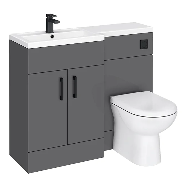 Apollo2 Gloss Grey L-Shaped Combination Furniture Pack – 1100mm Wide (Excludes Pan + Cistern) w. Matt Black Handles