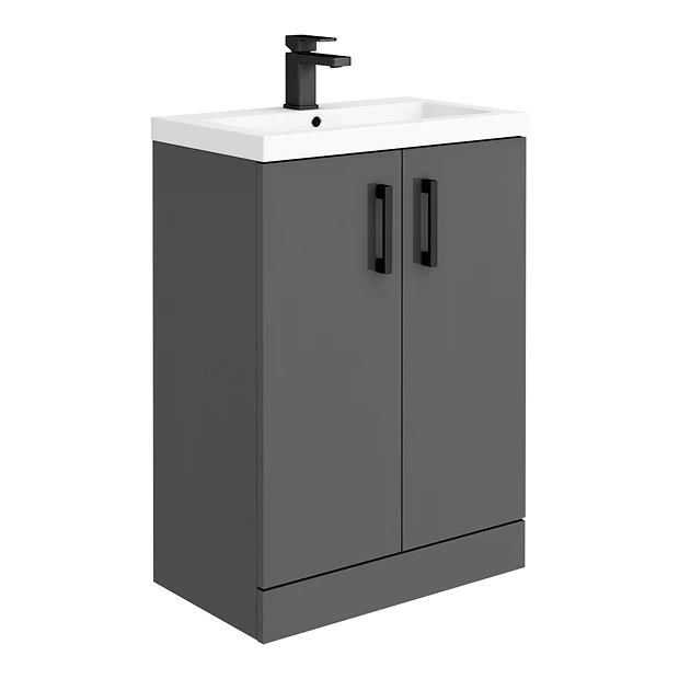 Apollo2 605mm Floor Standing Vanity Unit (Gloss Grey – Depth 360mm) with Matt Black Handles