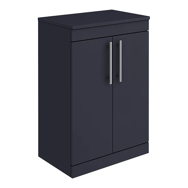 Arezzo 600 Matt Blue Floor Standing Vanity Unit with Worktop + Satin Chrome Knurled Round Handles (Excludes Basin)