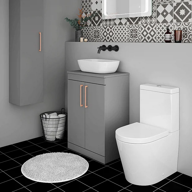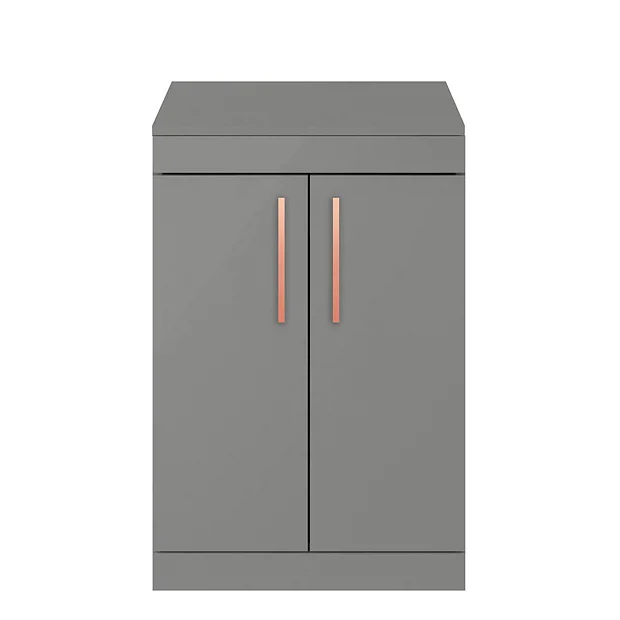 Arezzo 600 Matt Grey Floor Standing Vanity Unit with Worktop + Polished Rose Gold Handles (Excludes Basin)