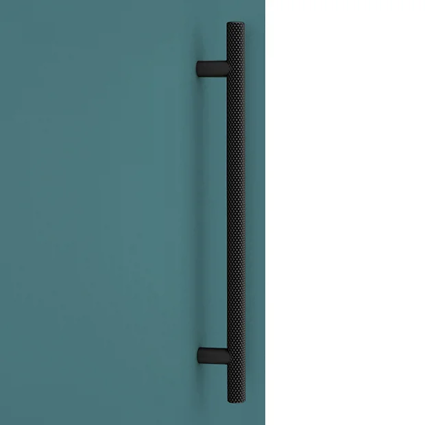 - Round knurled industrial style matt black bar handle