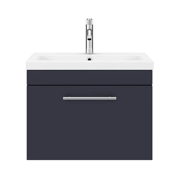 Arezzo Industrial Style 600 Matt Blue Wall Hung 1-Drawer Vanity Unit with Ceramic Mid-Edged Basin + Satin Chrome Knurled Round Pull Handle