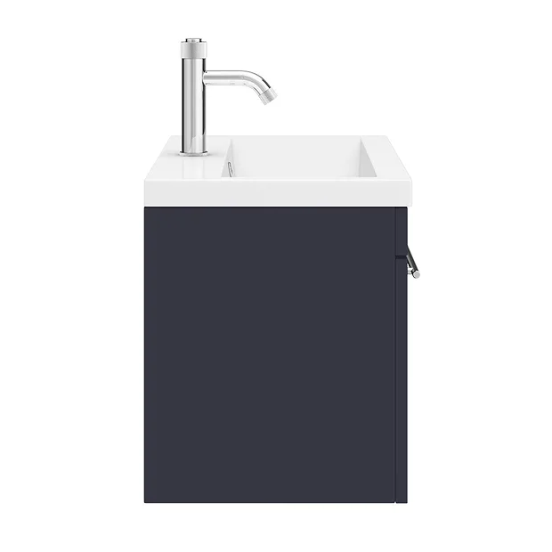 The contemporary matt blue Arezzo Industrial style furniture range, with it’s clean lines this vanity unit is perfect for renewing the style in any bathroom. It’s stylish modern design hides all unsightly pipework creating a neat modern look. The units soft-closing drawer provides plenty of storage space for toiletries. Features an eye-catching and stylish matt blue finish with a on-trend round satin chrome knurled detail handle, great for creating an eye catching industrial look in your bathroom.