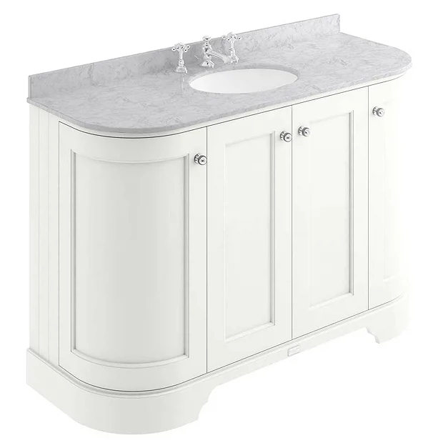 Bayswater Pointing White Curved 1200mm 4-Door Vanity Unit & 3TH Grey Marble Single Bowl Basin Top