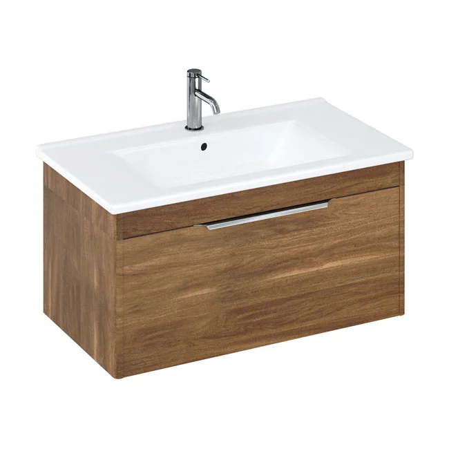 Britton Shoreditch 850mm Wall-Hung Single Drawer Vanity Unit with Chrome Handle – Caramel