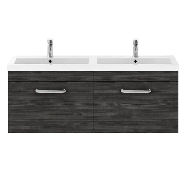 The 1205mm wide Brooklyn double basin wall hung vanity unit, bring a clean modern look to your bathroom. Combines up to date looks with practical storage, perfect for couples or families.