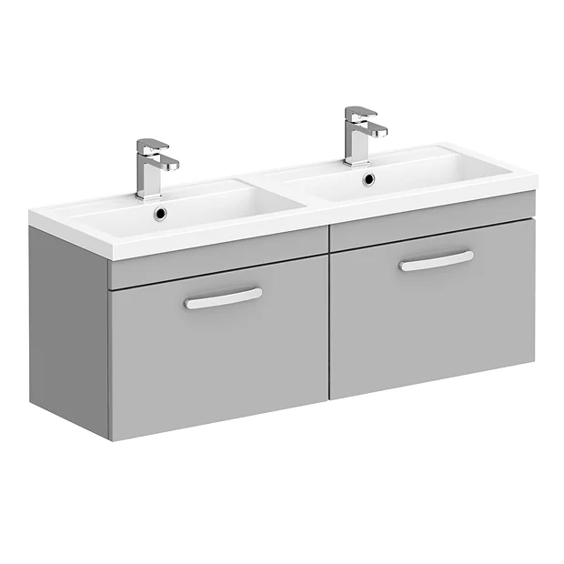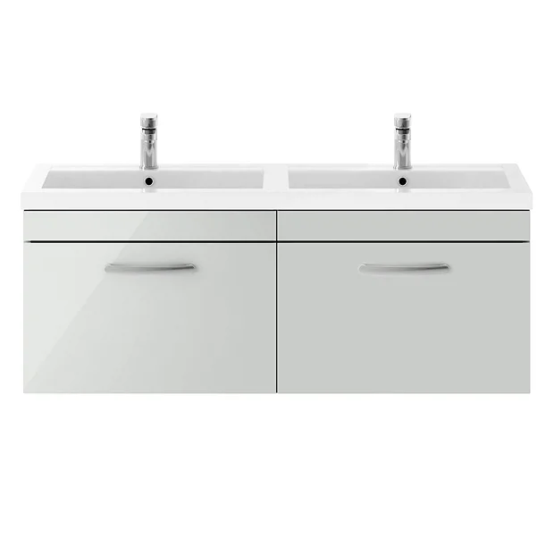 Brooklyn 1205mm Gloss Grey Mist Wall Hung 2 Drawer Double Basin Vanity Unit