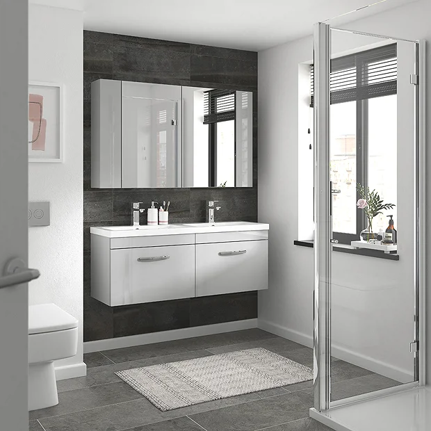 The 1205mm wide Brooklyn double basin wall hung vanity unit, bring a clean modern look to your bathroom. Combines up to date looks with practical storage, perfect for couples or families.