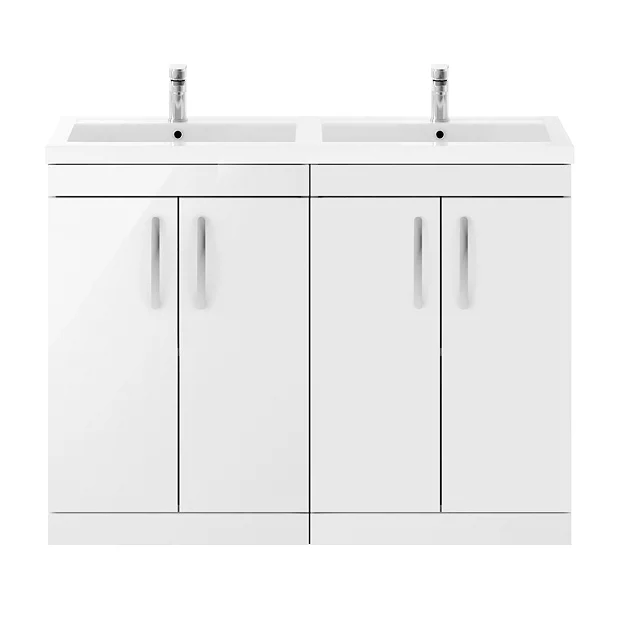 Brooklyn 1205mm White Gloss 4-Door Double Basin Vanity Unit