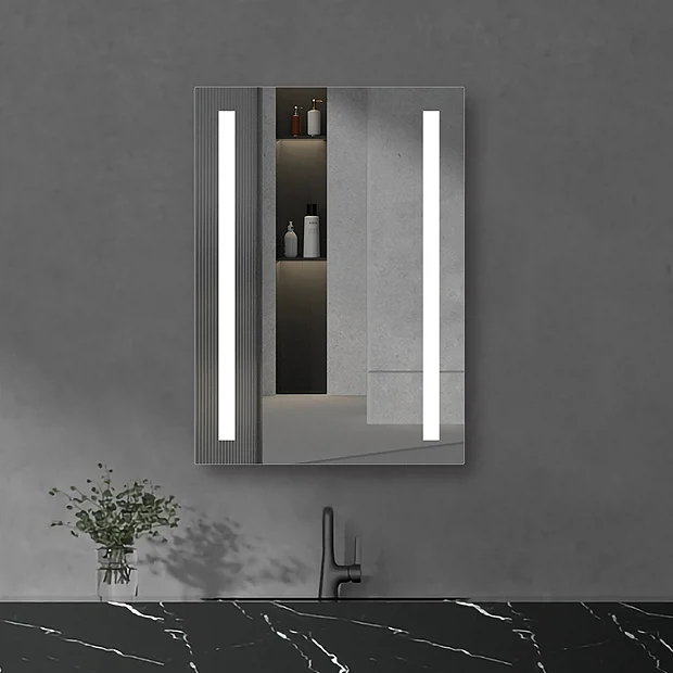 Bring modern design and contemporary good looks to your bathroom with this stunning battery operated universal (landscape or horizontal fitting) bathroom mirror with in-built lighting. This stylish battery operated bathroom mirror can be installed by anyone without the need of an electrician. The battery operated led mirror features two strips of light that run along the longer edges of the mirror providing direct bright light with an ON/OFF rocker switch hidden on the side.