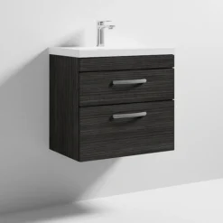 Brooklyn 600mm Black Woodgrain Wall Hung 2-Drawer Vanity Unit with Thin-Edged Ceramic Basin