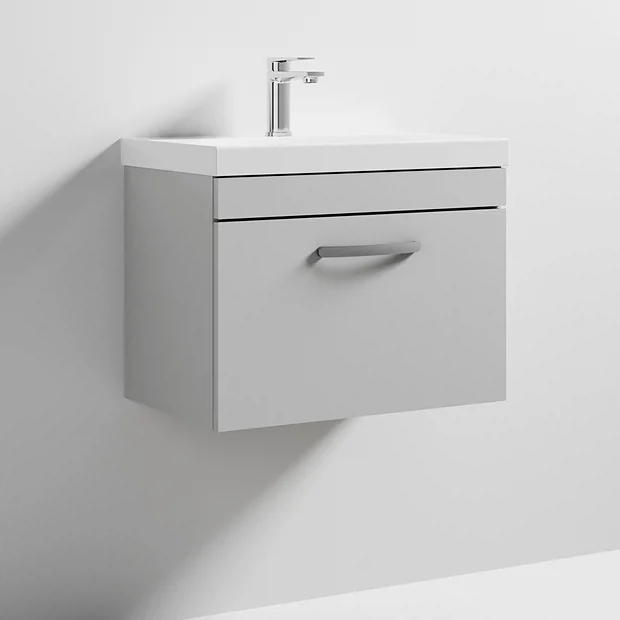 (1) Wall Hung Single Drawer Vanity Unit – Grey Mist (600 x 383mm)