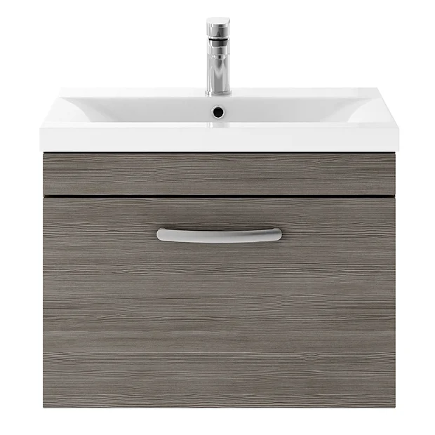Brooklyn Grey Brown Avola Wall Hung Vanity Unit Single Drawer – 600mm