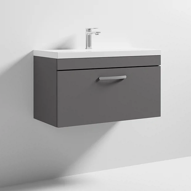 Brooklyn 800mm Gloss Grey Wall Hung 1-Drawer Vanity Unit with Thin-Edged Ceramic Basin