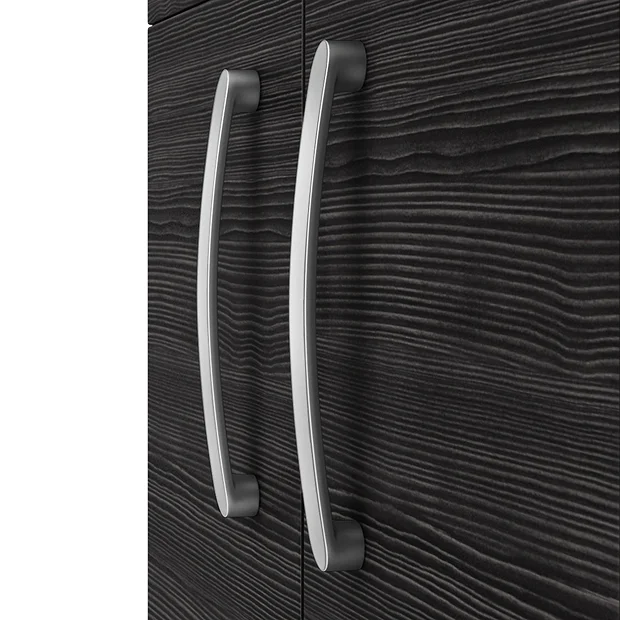 The Brooklyn Black Woodgrain modular furniture range combines up to date looks with practical storage. Features 2 soft close doors and provides plenty of storage space for toiletries, the Brooklyn wall hung vanity unit is perfect for adding modern style to any bathroom. This high quality Black Woodgrain textured wood effect vanity unit is supplied with a smooth white gloss vitreous china basin. All units are provided with quality matt chrome handles.
