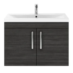 Brooklyn 800mm Black Woodgrain 2 Door Wall Hung Vanity Unit
