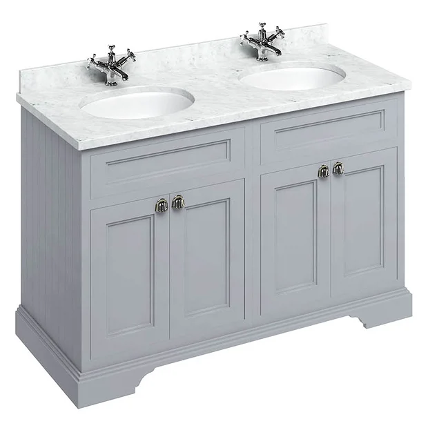 Burlington 130 4-Door Vanity Unit & Minerva Worktop with Double Basin – Classic Grey