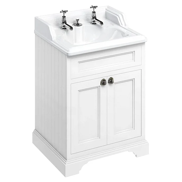 Burlington 65 2-Door Vanity Unit & Classic Invisible Overflow/Waste Basin (Matt White – 2 Tap Hole)