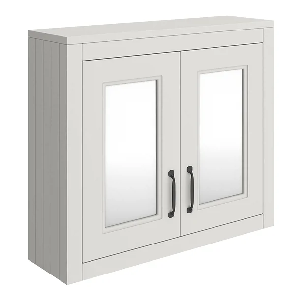 Chatsworth Grey 2-Door Mirror Cabinet – 690mm Wide With Matt Black Handles