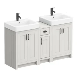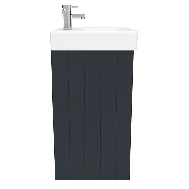 Choose this Chatsworth Traditional Graphite Vanity, with its dark grey and white colour scheme, to bring monochrome charm to your bathroom. At 560mm wide, the freestanding vanity unit slots naturally into compact spaces. Store towels, bottles and other bits on its internal shelf, accessible via the handy noise reducing soft close doors. This graphite vanity unit also features tongue and groove panel detailing and is finished in satin graphite, creating a period inspired look. To top it off, this vanity is crowned with a gloss white ceramic basin that’s a breeze to keep clean – simply spray and wipe.