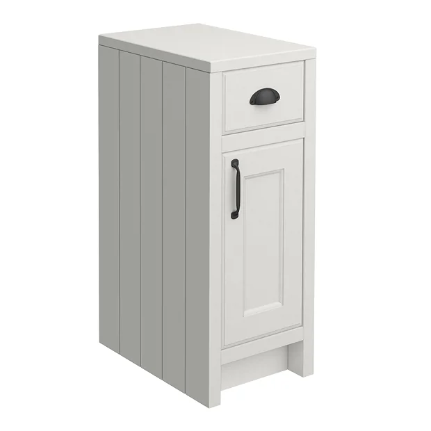 Victorian inspired design with a modern twist. The Chatsworth range of charming bathroom furniture features classic styling with a satin grey finish cabinet, tongue-and-groove side panelling and on-trend matt black handles.