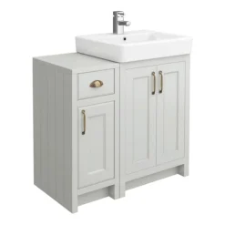 Internal and open shelves provide generous storage space for your toiletries, helping to keep your bathroom clutter free. Manufactured to a high standard, the inspired Chatsworth range of luxury furniture with it’s clean minimalist design and muted palette blends beautifully with any style of bathroom.