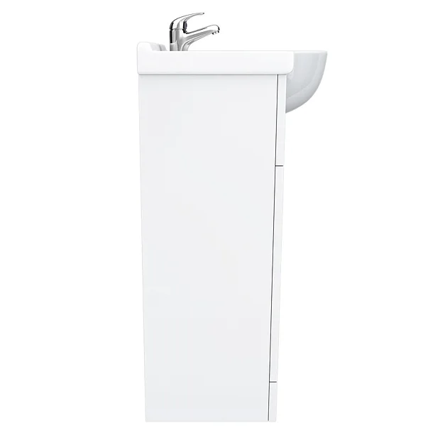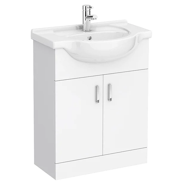 This Cove White Vanity Unit is both practical and easy on the eye – with a width of just 650mm it will also keep compact bathrooms looking their best. Its smooth ceramic basin offers a gleaming white finish that’s simple to clean and has a classic look. The gloss white vanity unit below features ample shelved storage space for your bathroom essentials, helping to keep your surfaces clutter free. Two soft closing doors prevent unnecessary slamming and shining chrome handles add a flash of modern sparkle. The basin vanity unit even comes fully assembled, saving you time on installation.