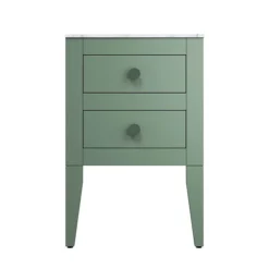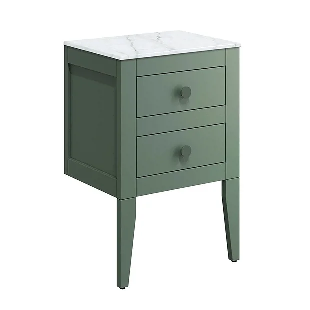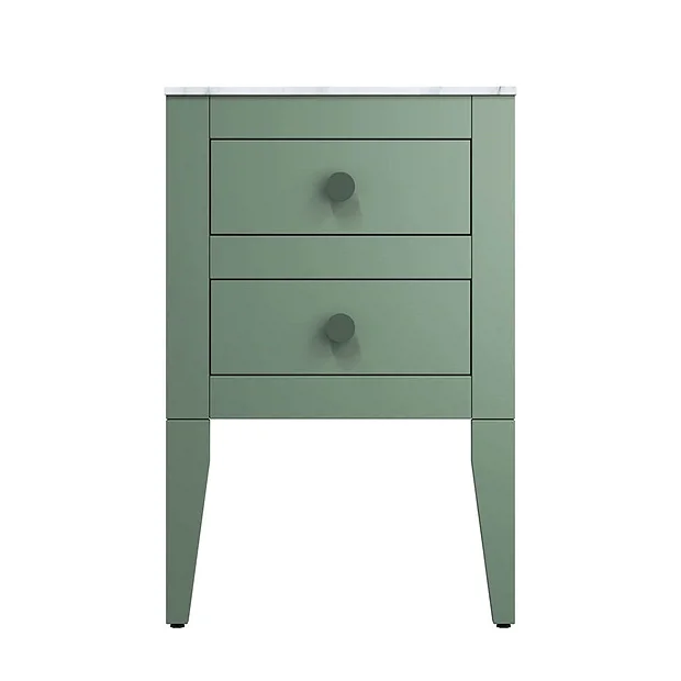 Crosswater Canvass Sage Green 485mm Double Drawer Unit with Carrara Marble Effect Worktop