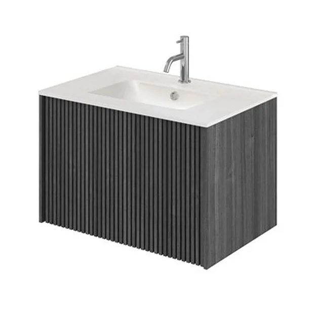 Crosswater Limit 700mm Steelwood Wall-Hung Slatted Single Drawer Vanity Unit with Ceramic Basin