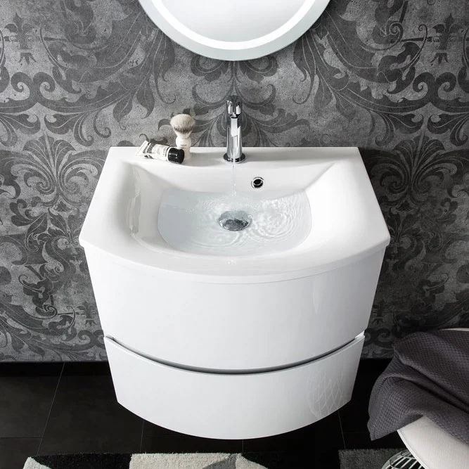 The Svelte furniture range is sleek and versatile with units coming in various sizes to suit any bathroom layout. This two drawer vanity unit and basin comes in a classic White Gloss finish and features sumptuous curves. Its handleless design gives it a simplistic look whilst the anti-bacterial finish gives a clean and hygenic surface. The stylish Durocoat cast mineral basin tops the unit and comes in a stunning white high gloss finish.