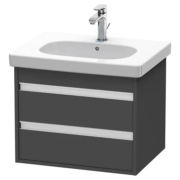 Duravit Ketho 600mm 2-Drawer Wall Mounted Vanity Unit with D-Code Basin – Graphite Matt