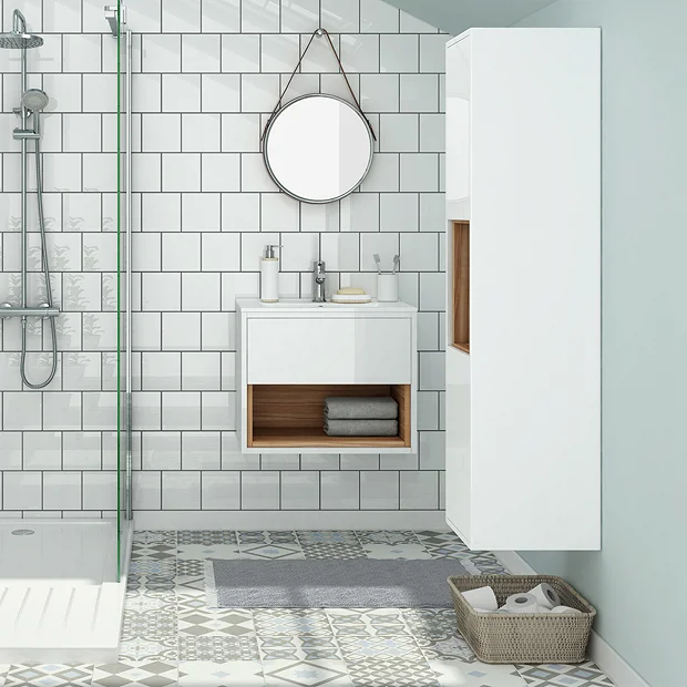 Haywood 1400mm Gloss White / Natural Oak Wall Hung Tall Unit