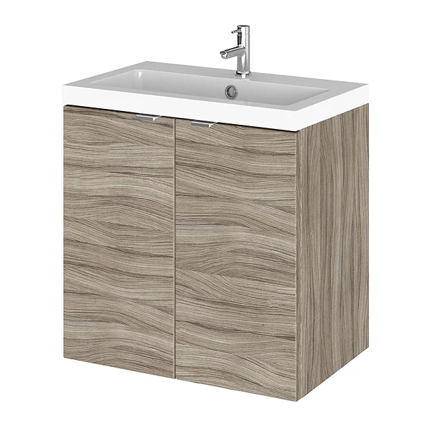 Hudson Reed Fusion 500mm Driftwood Full Depth Wall Hung 2-Door Unit & Basin