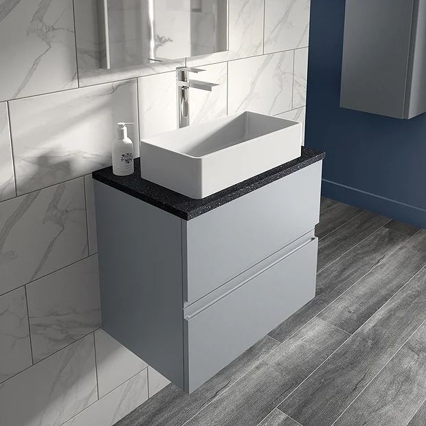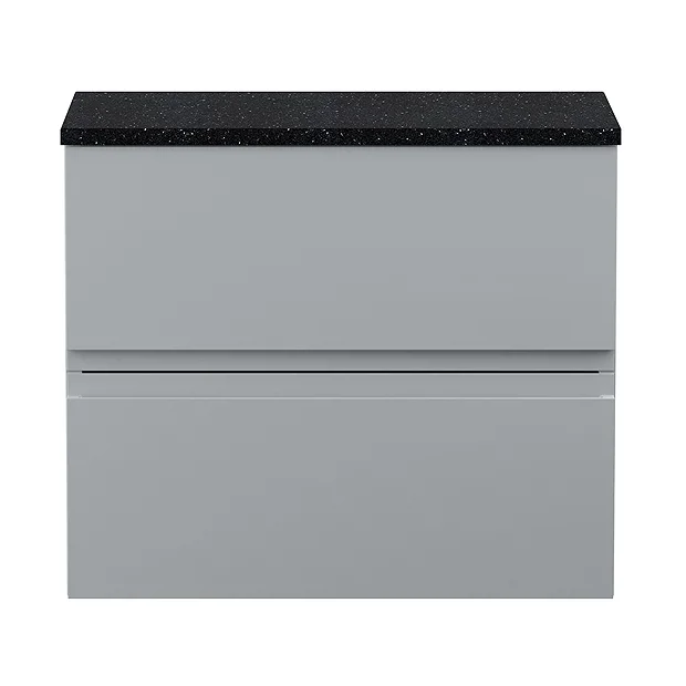 Hudson Reed Urban 600mm Satin Grey Vanity Unit – Wall Hung 2 Drawer Unit with Sparkling Black Quartz Effect Worktop – URB204LSB