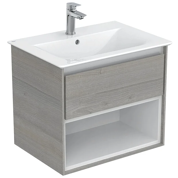 Ideal Standard Connect Air Wood Light Grey 600mm Wall Hung Vanity Unit with Open Shelf