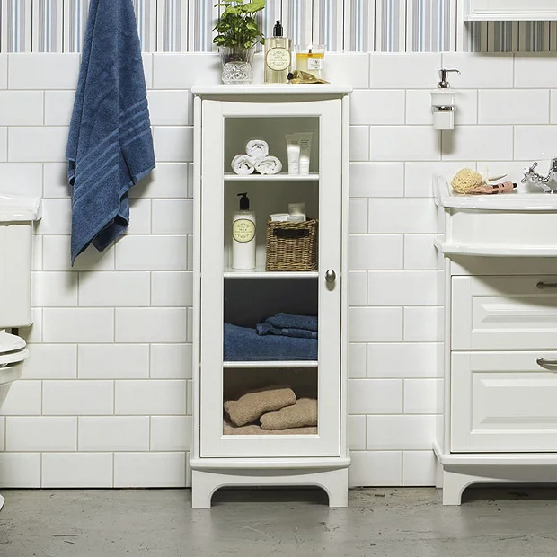 The Traditional 1903 Display Cabinet from Miller features a hardened bevelled clear glass door and an all smooth white painted surface. The unit incorporates 1 fixed and 2 adjustable wooden shelves. The cabinet is fitted with mounting rails and brackets for adjustable and quick installation and comes supplied a traditional chrome and white ceramic knob. Available in a left or right hung door.
