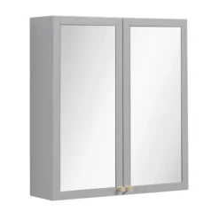 Montrose 600mm Dove Grey Mirrored Cabinet With Brushed Brass Handles