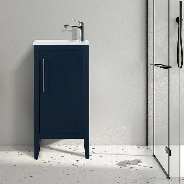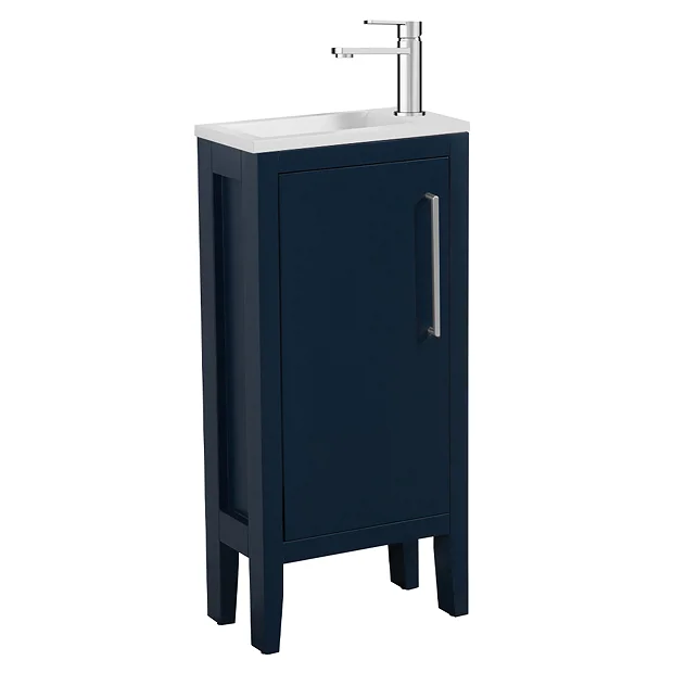Montrose 400mm Floor Standing Cloakroom Vanity Unit in Indigo Blue with Chrome Handle and Reversible Stone Resin Basin
