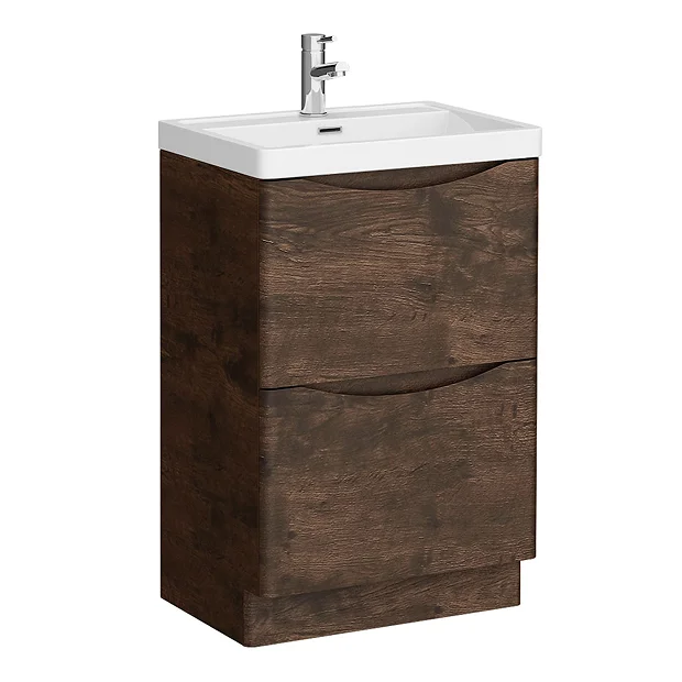 A minimalist design combines with maximum storage in the Monza Chestnut Vanity Unit. This 500mm wide, floor standing vanity unit has two generously proportioned soft closing drawers for storing your bathroom essentials. The freestanding vanity unit is topped with a contrasting white gloss basin in durable polymarble – easy to wipe clean for long lasting sparkle. If you love this Chestnut vanity unit, you might appreciate the matching Chestnut Monza Tall Storage Unit for even more cupboard space.