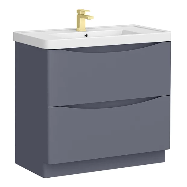 A minimalist design combines with maximum storage in the Monza Matt Grey Vanity Unit. This 900mm wide, floor standing vanity unit has two generously proportioned soft closing drawers for storing your bathroom essentials. The freestanding vanity unit is topped with a contrasting white gloss basin in durable polymarble – easy to wipe clean for long lasting sparkle. If you love this matt grey vanity unit, you might appreciate the matching Matt Grey Monza Tall Storage Unit for even more cupboard space.