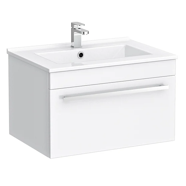 Nova Wall Hung Vanity Sink With Cabinet – 600mm Modern High Gloss White