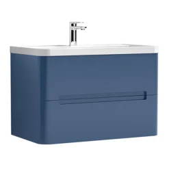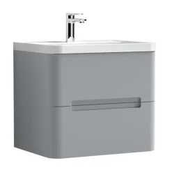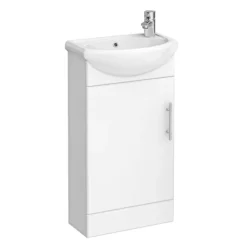 A stylish compact wall hung vanity unit, perfect for cloakrooms or en-suites this quality wall hanging cabinet with oak finish comes with a chrome handle and provides practical storage. Features a high quality 1 tap hole ceramic basin with overflow. This stunning piece of minimalist bathroom furniture complements any modern bathroom. Comes with a 5 year guarantee.