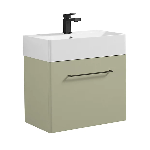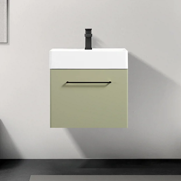 Odyssey 600mm Wall Hung 1-Drawer Vanity Unit in Sage Green with Matt Black Handle