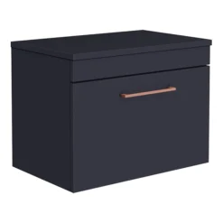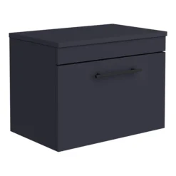 Arezzo Wall Hung Countertop Vanity Unit – Matt Blue – 600mm With Industrial Style Black Handle