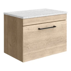 Arezzo Wall Hung Countertop Vanity Unit – Rustic Oak – 600mm With White Worktop & Matt Black Handle