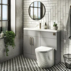 Arezzo 1100 Matt Grey Slimline Combination Vanity Unit (Brushed Brass Flush & Handles)