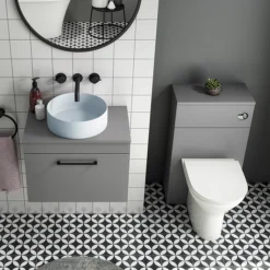 Arezzo 600 Grey Wall Hung Unit With Blue Round Counter Top Basin + Toilet Pack