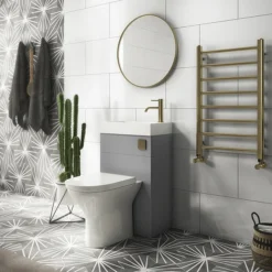 Arezzo Matt Grey 2-In-1 Wash Basin & Toilet (500mm Wide X 300mm) Incl. Brushed Brass Flush