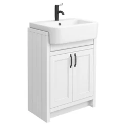 Chatsworth Traditional White Semi-Recessed Vanity – 600mm Wide With Matt Black Handles