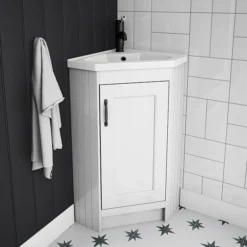 Chatsworth Traditional White Corner Vanity Unit With Matt Black Handle